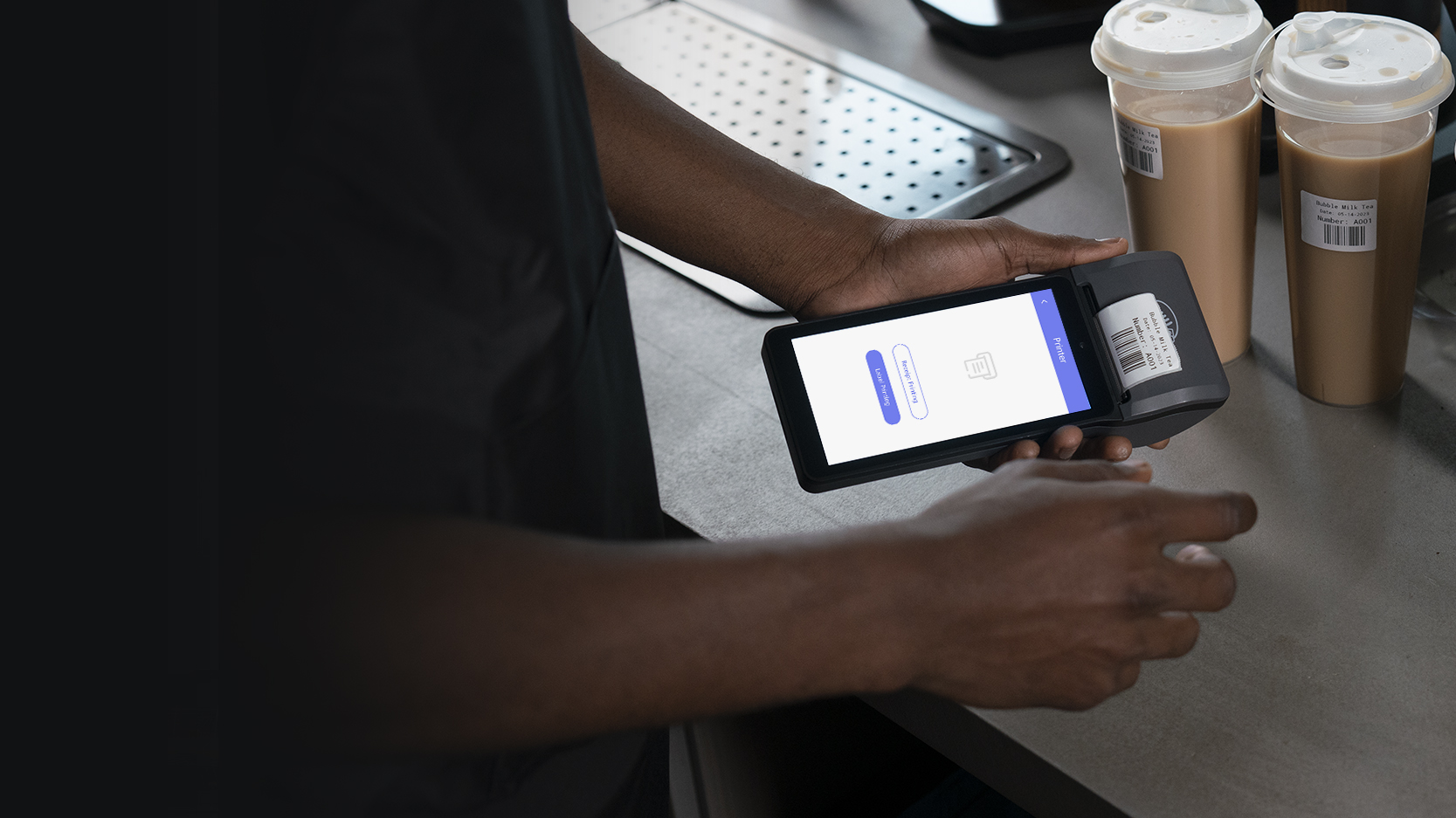 The embedded thermal printer supports high-speed printing and dual printing function. The merchant can print both the receipt and